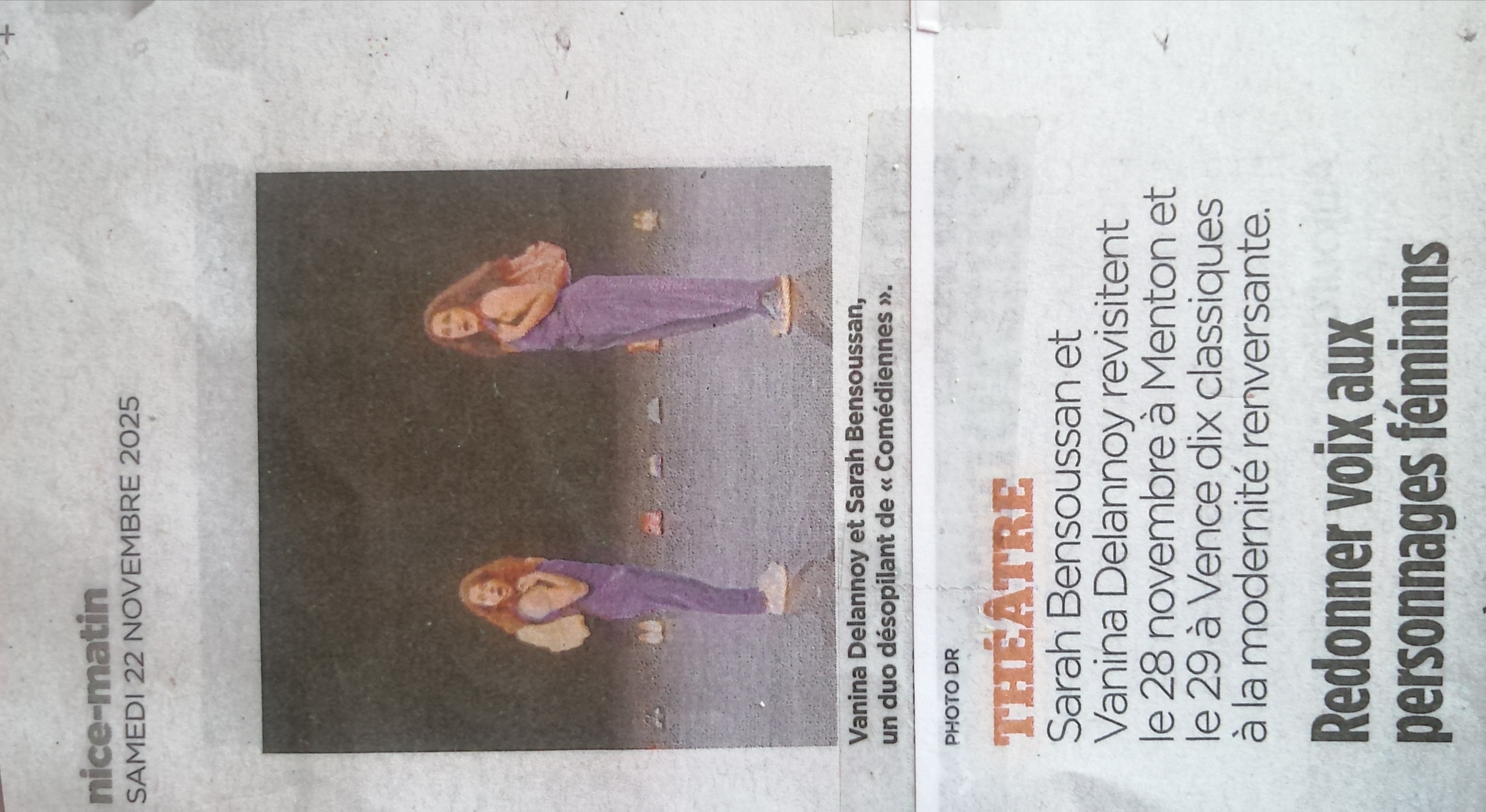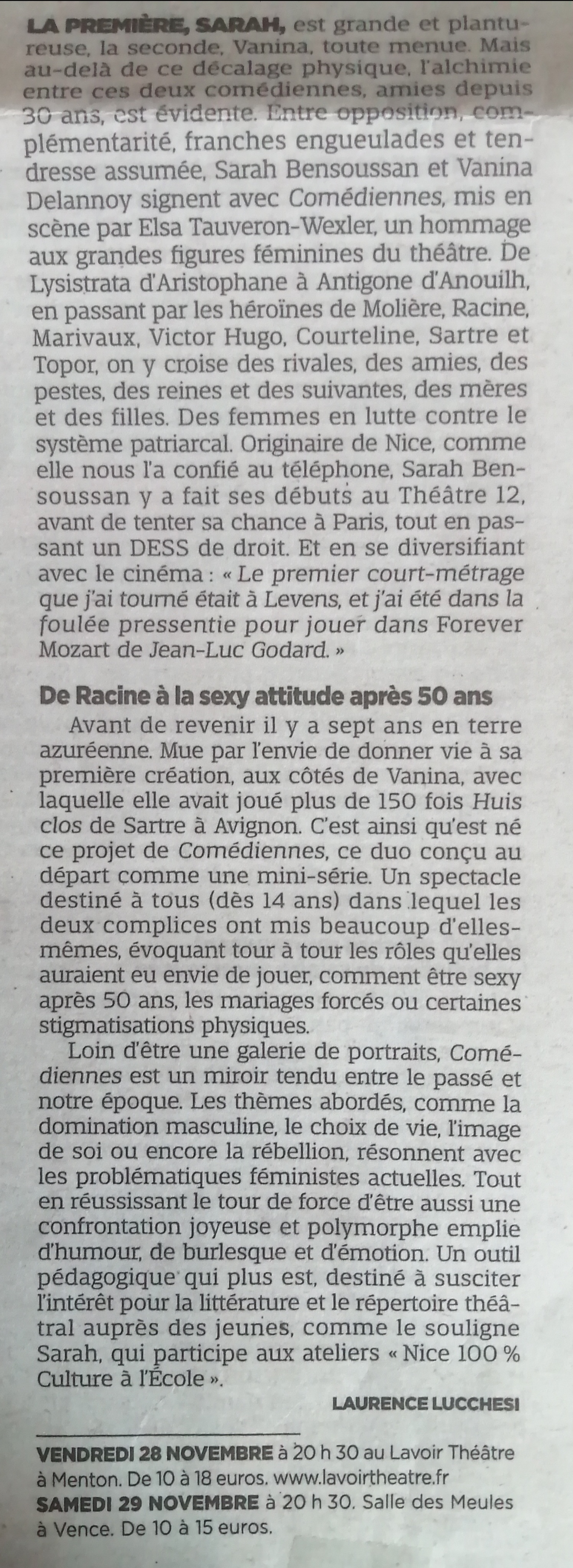 - COMEDIENNES! un duo qui taquine nos grands auteurs (divers/ S.Bensoussan et V.Delannoy) - collaboration Elsa Tauveron-Wexler - Nice, Avignon